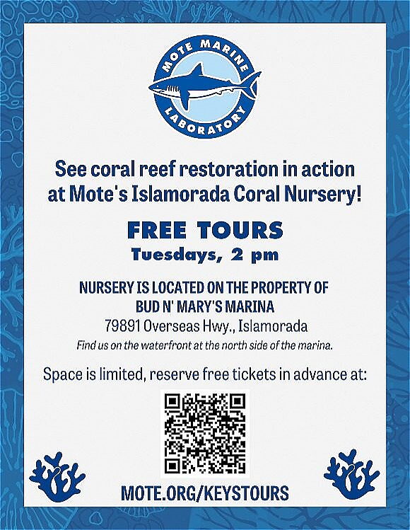 Looking for a truly Florida Keys experience near the Coconut Palm Inn? You can tour the future of the Florida Keys every week at Mote's Islamorada Marine Laboratory Coral Nursery. These very special tours are limited to 12 lucky participants at nearby Bud N Mary's Marina. This is one of two facilities in the Keys where cutting-edge marine biology and science are being used to protect our local environment. These tours happen on Tuesdays at 2:00 and require a free reservation.